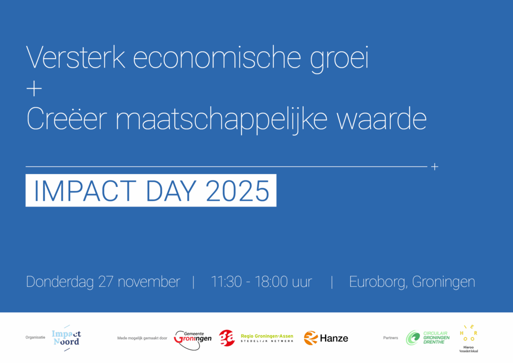Impact Day Noord wordt mede mogelijk gemaakt door Impact Noord, de gemeente Groningen, Regio Groningen-Assen en De Hanzehogeschool Groningen.
